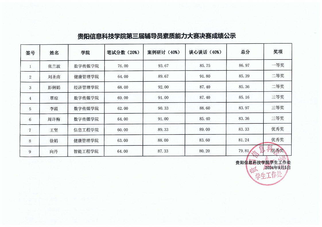 beat365在线唯一官网第四届辅导员素质能力大赛总成绩公示