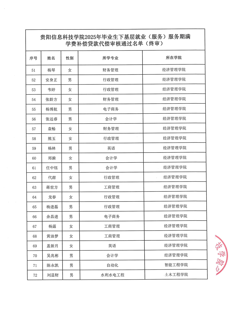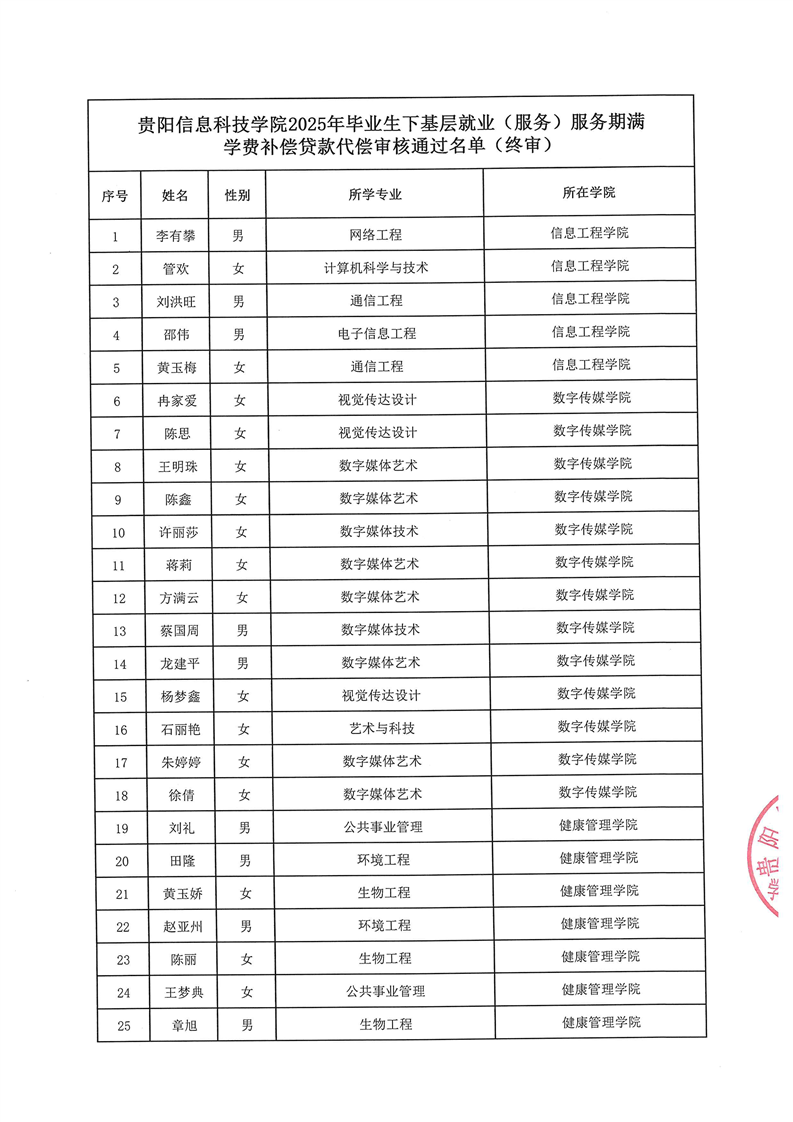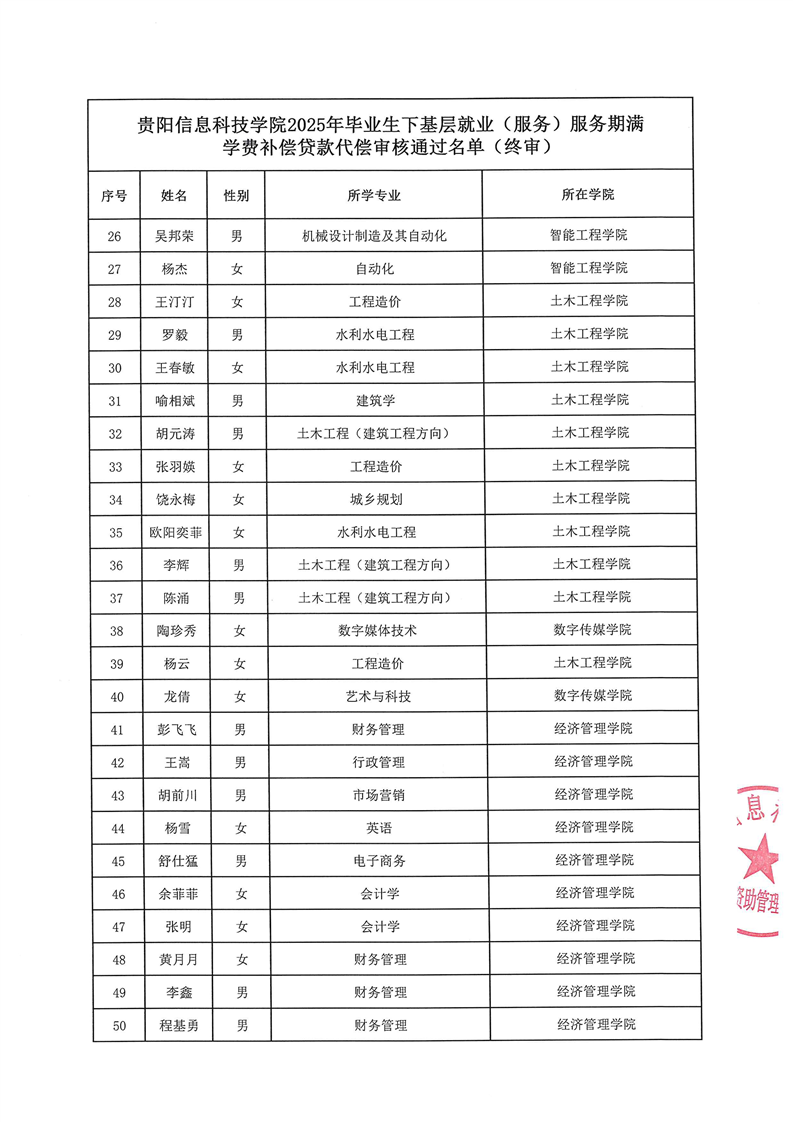 beat365在线唯一官网2025年毕业生下基层就业(服务)服务期满学费补偿贷款代偿 审核通过名单公示