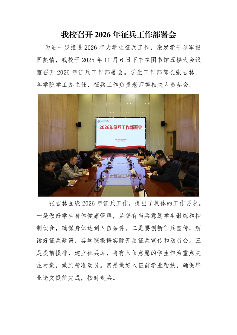 强军尚武固国防 薪火相传育英才 ——学校召开2025年征兵工作总结表彰暨2026年征兵工作启动大会