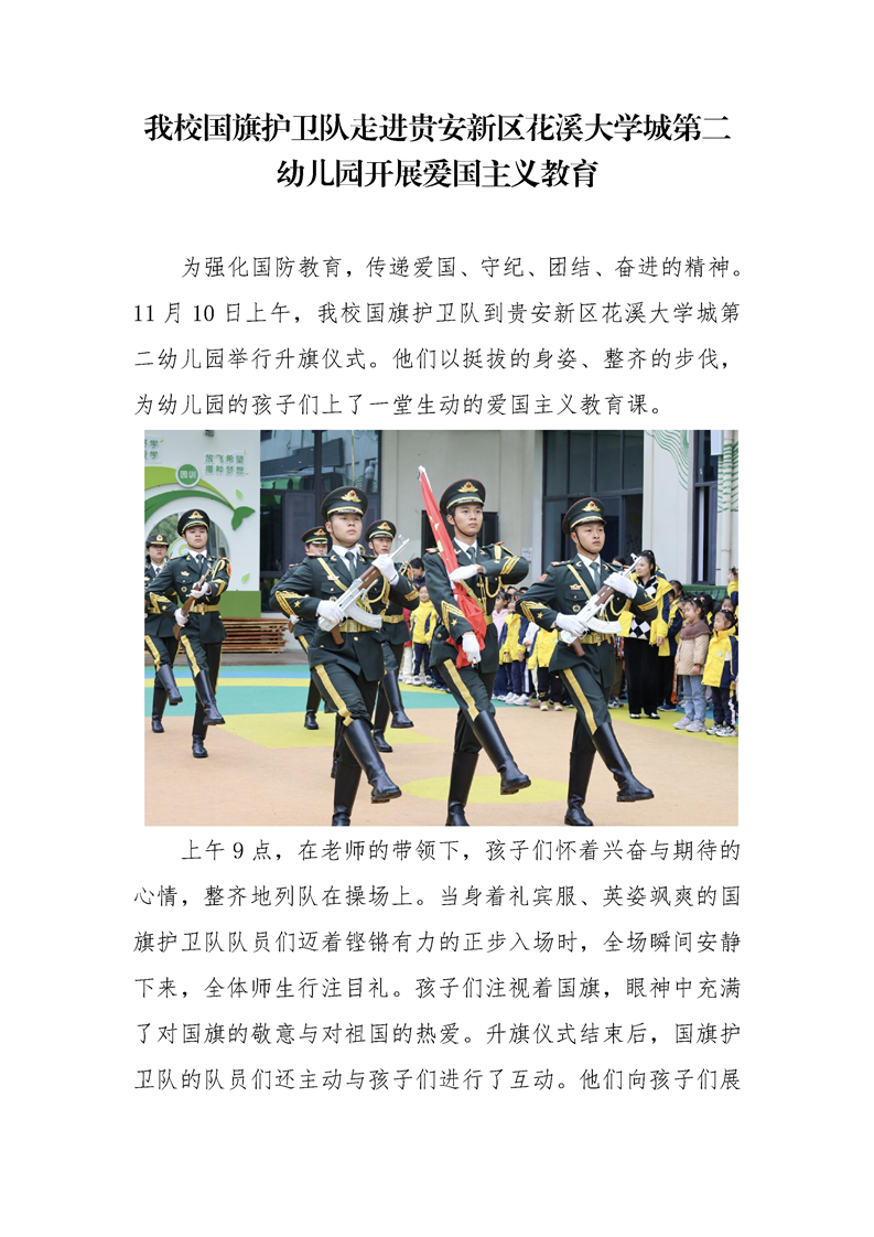 beat365国旗护卫队走进贵安新区花溪大学城第二幼儿园开展爱国主义教育