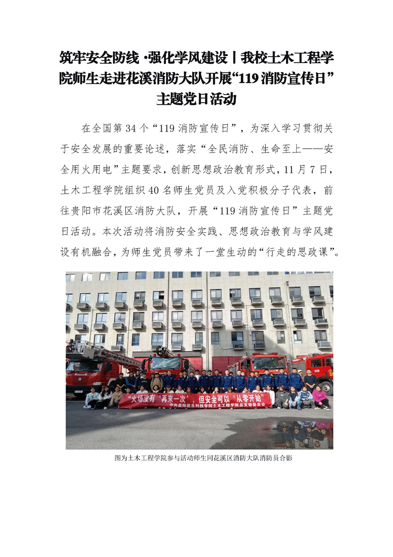 筑牢安全防线·强化学风建设丨beat365土木工程学院师生走进花溪消防大队开展“119消防宣传日”主题党日活动