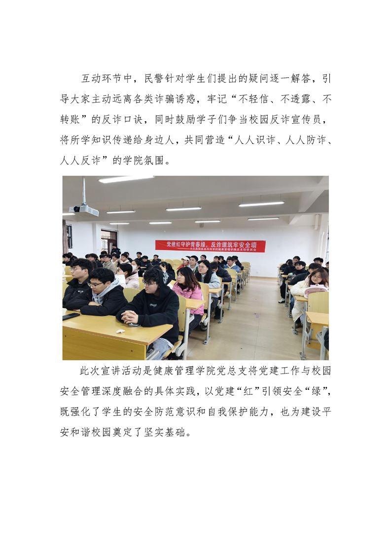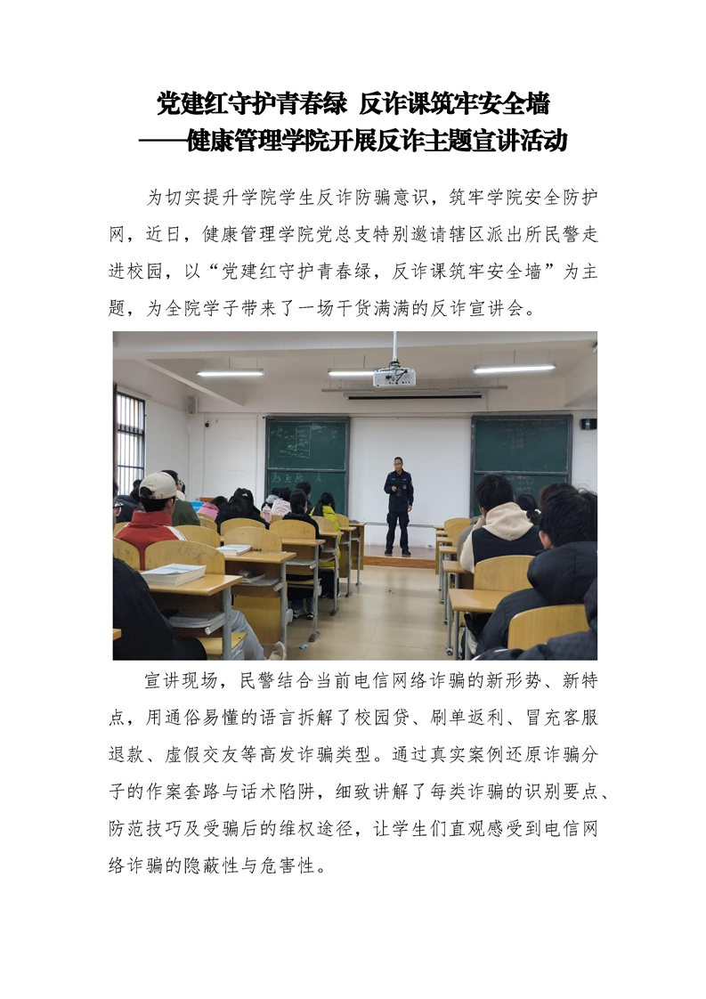 党建红守护青春绿 反诈课筑牢安全墙——健康管理学院开展反诈主题宣讲活动