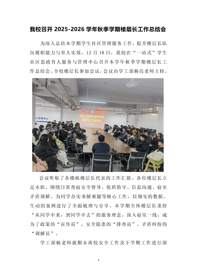 beat365召开2025-2026学年秋季学期楼层长工作总结会