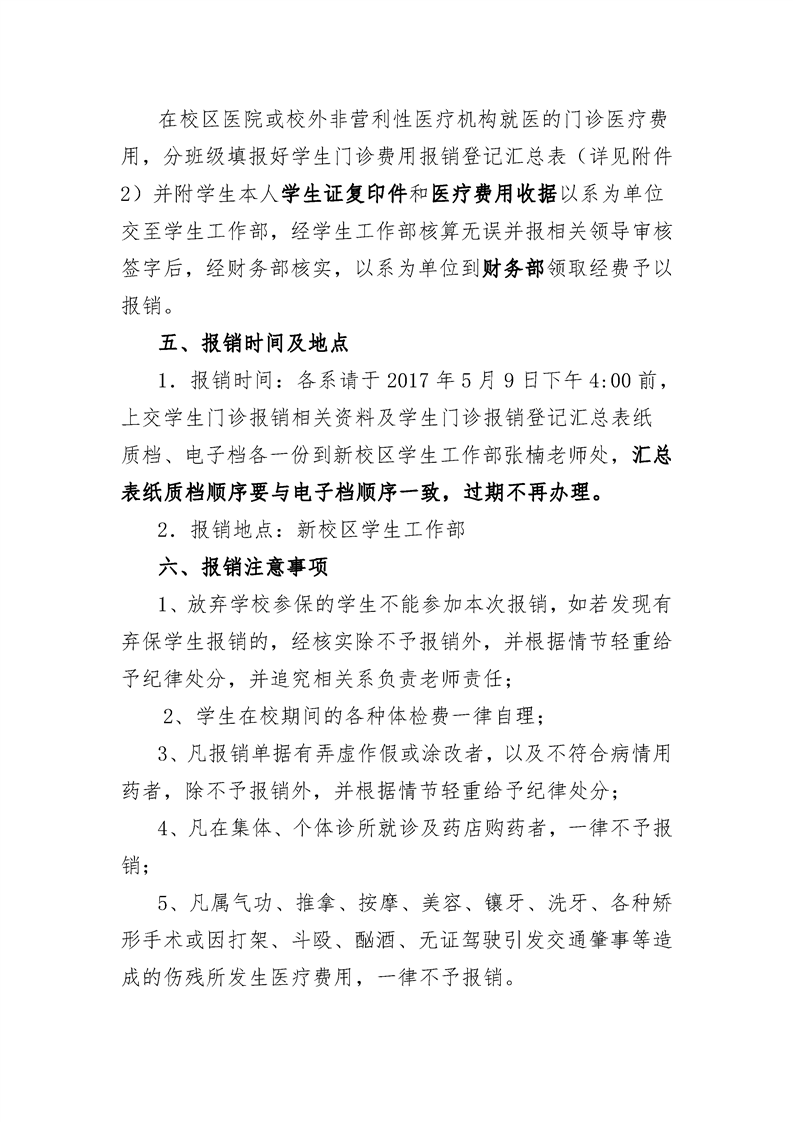 关于做好2016-2017学年第二学期学生 门诊医疗报销工作的通知