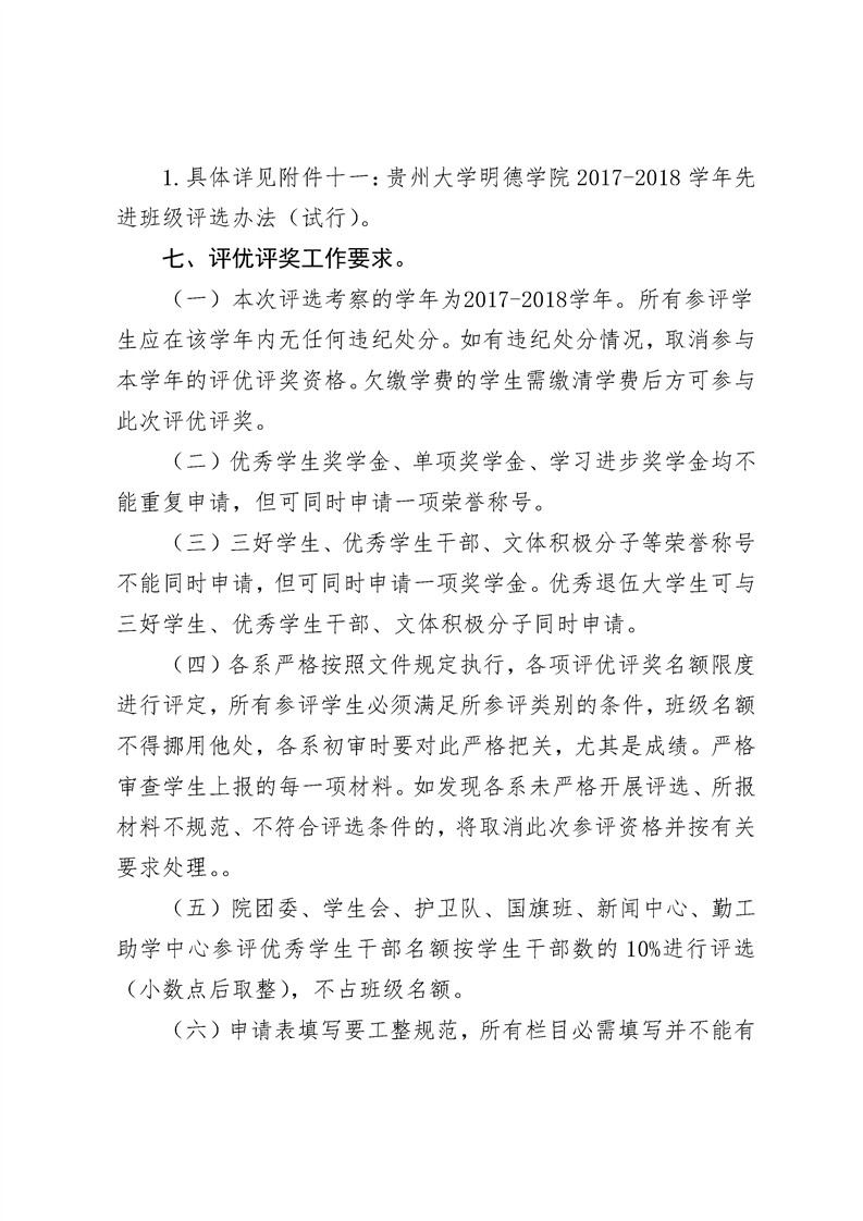 附件11:贵州大学明德学院先进班集体评选细则(试行).doc