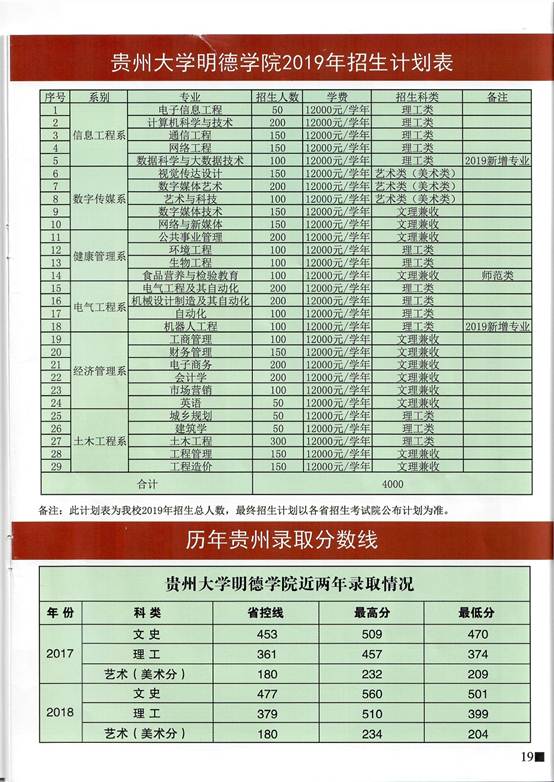 贵州大学明德学院2019年报考指南