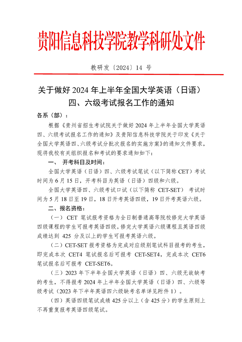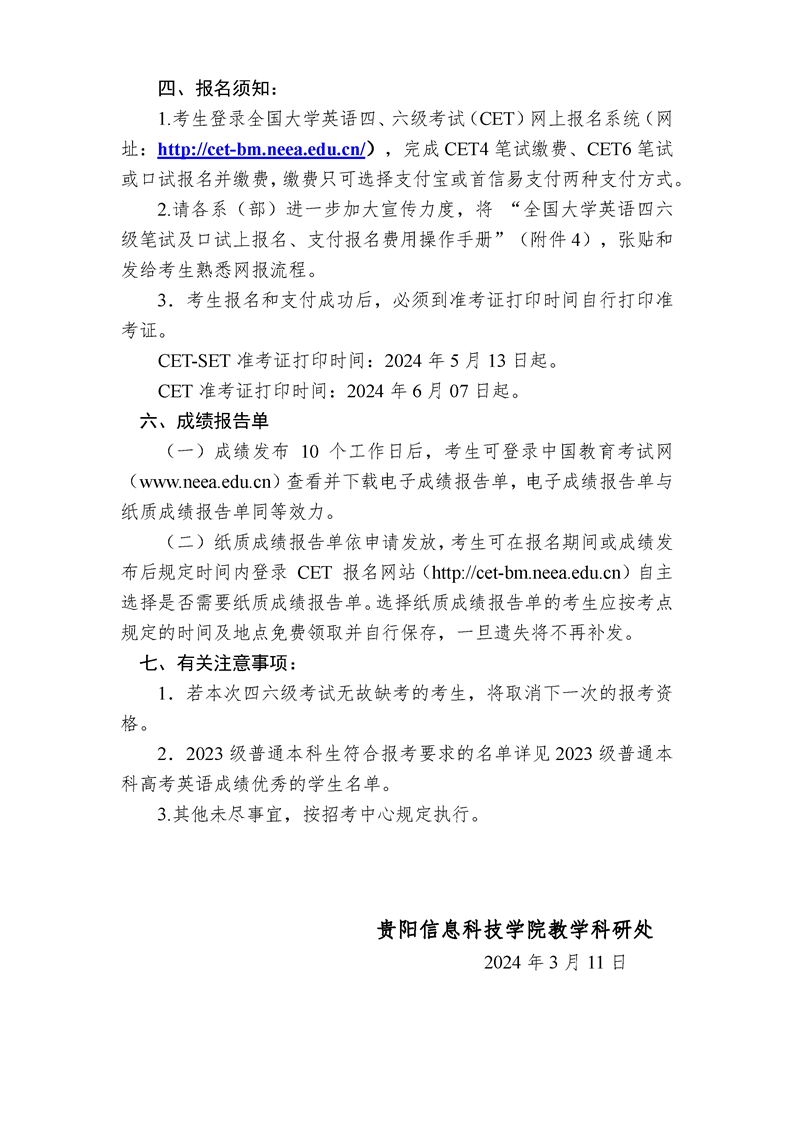 2024年上半年全国大学英语四六级报名通知