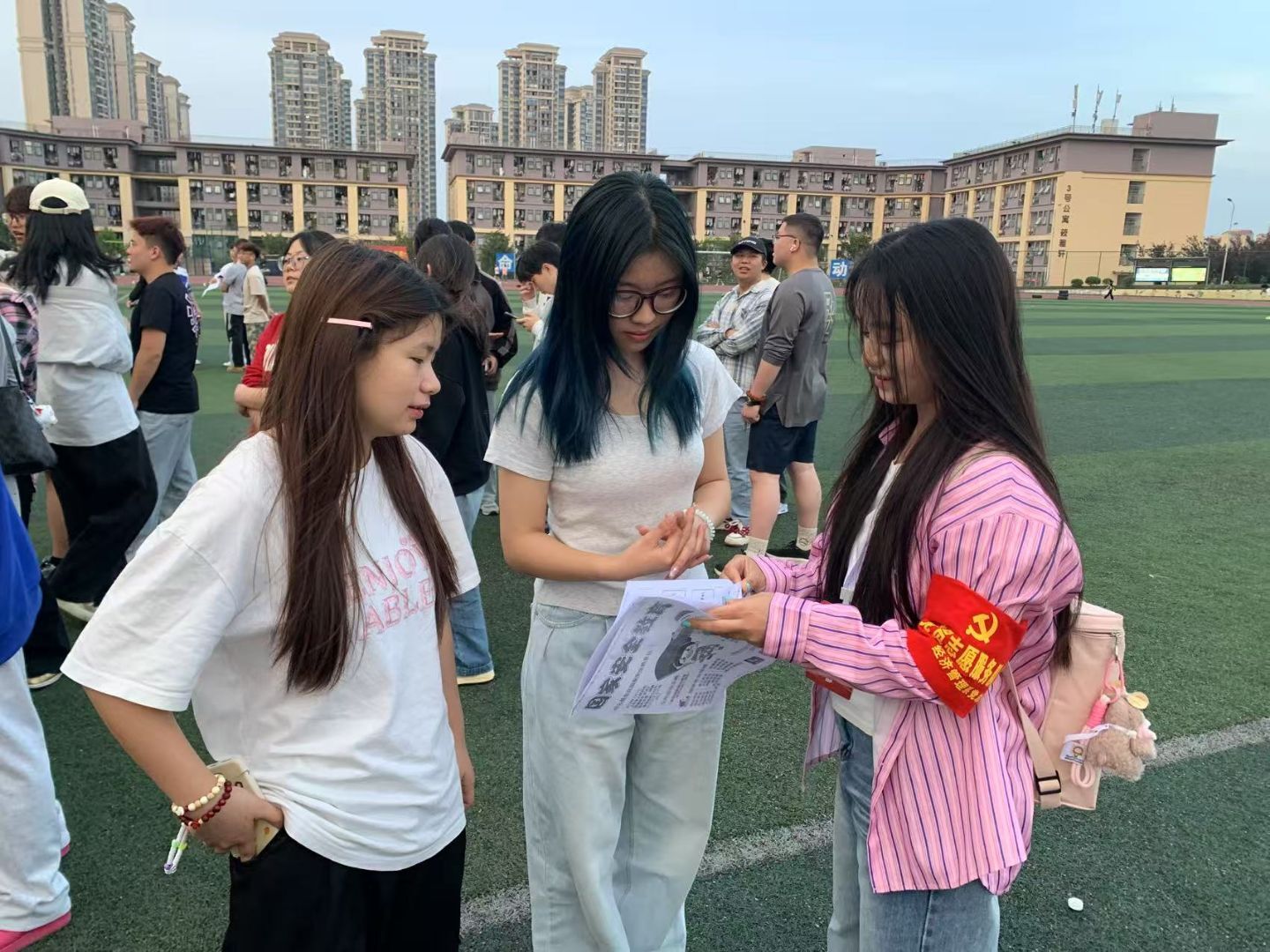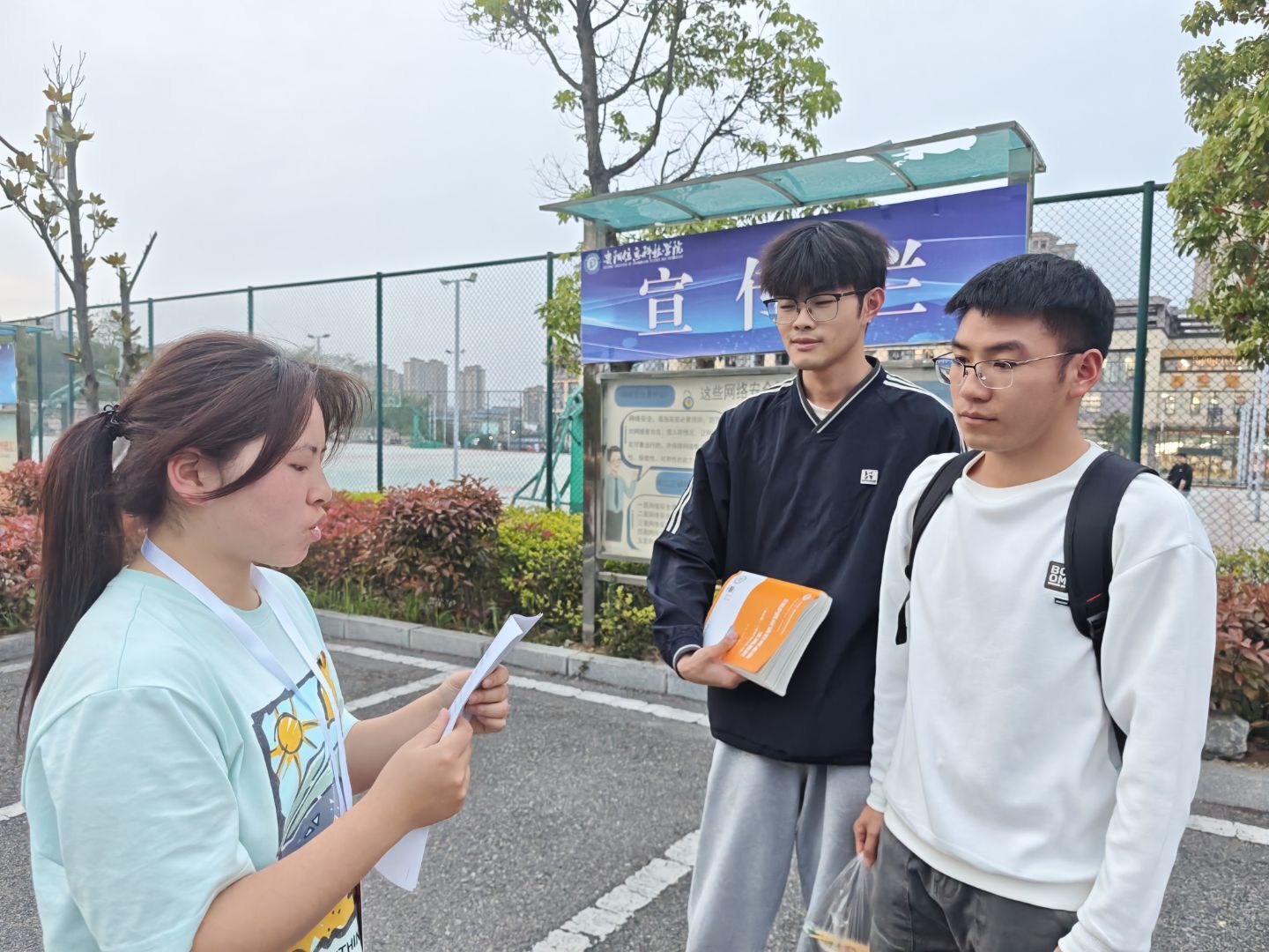 宣讲志愿者们还向过往的同学耐心讲解国家安全知识,用通俗易懂的语言让复杂的概念变得清晰易懂。为了增加活动的趣味性和互动性,现场设置了知识问答环节。同学们纷纷踊跃参与,在轻松愉快的氛围中学习国家安全知识。一位正在参与活动的同学说道:“这种在操场上开展的宣传活动形式很新颖,让我们在休闲娱乐的同时,也学到了很多国家安全知识。”这种将教育与娱乐相结合的活动形式,让国家安全教育更加贴近学生的生活,提高了同学们的学习积极性。