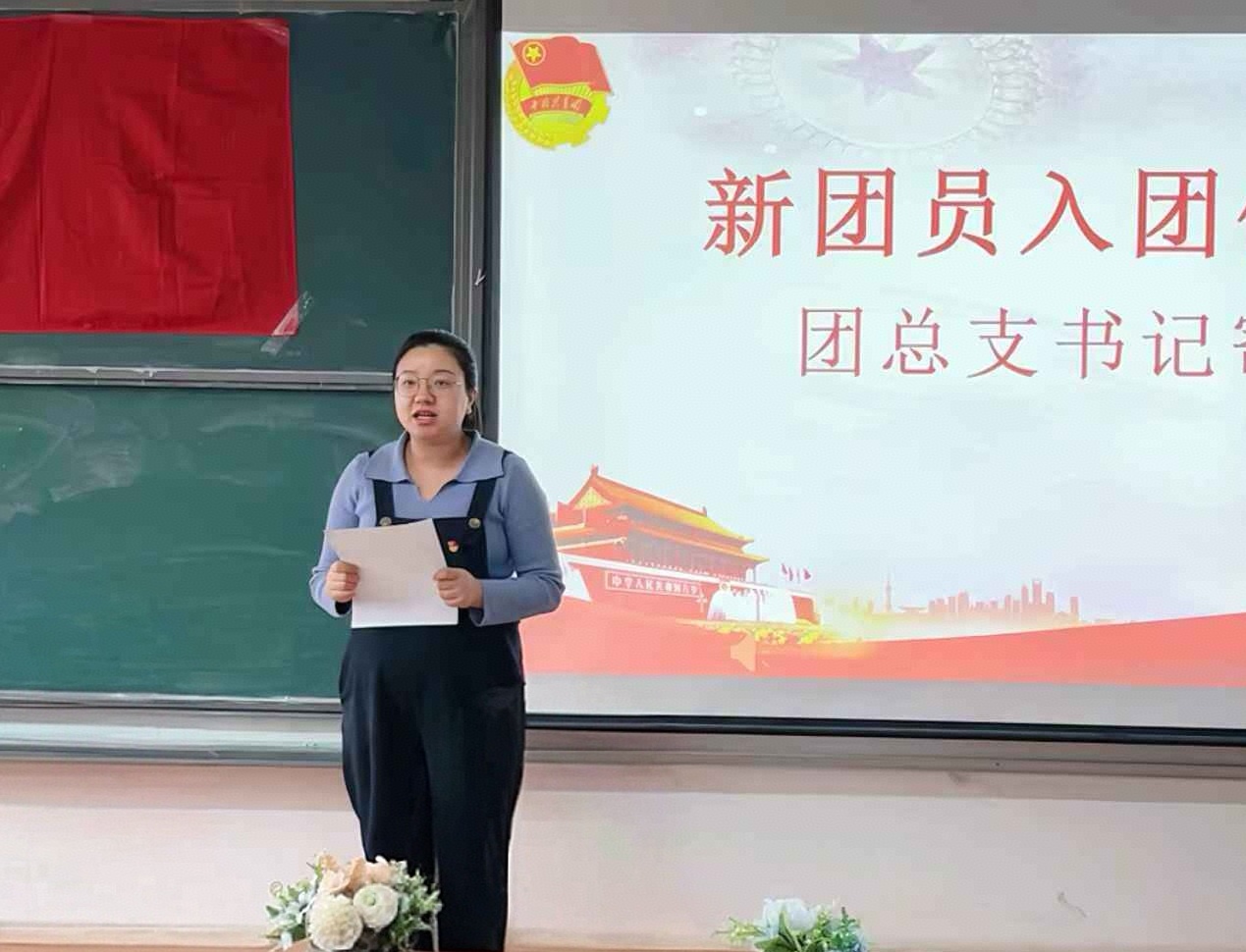 随后,老团员代表段忠敏分享自己入团以来的成长与收获。她感慨道:“看着大家朝气蓬勃的面庞,仿佛看到当年的自己。团组织的培养,让我从青涩走向成熟,希望新团员们珍惜这份身份,在团组织中不断汲取力量,在学习和生活中发挥带头作用!”
