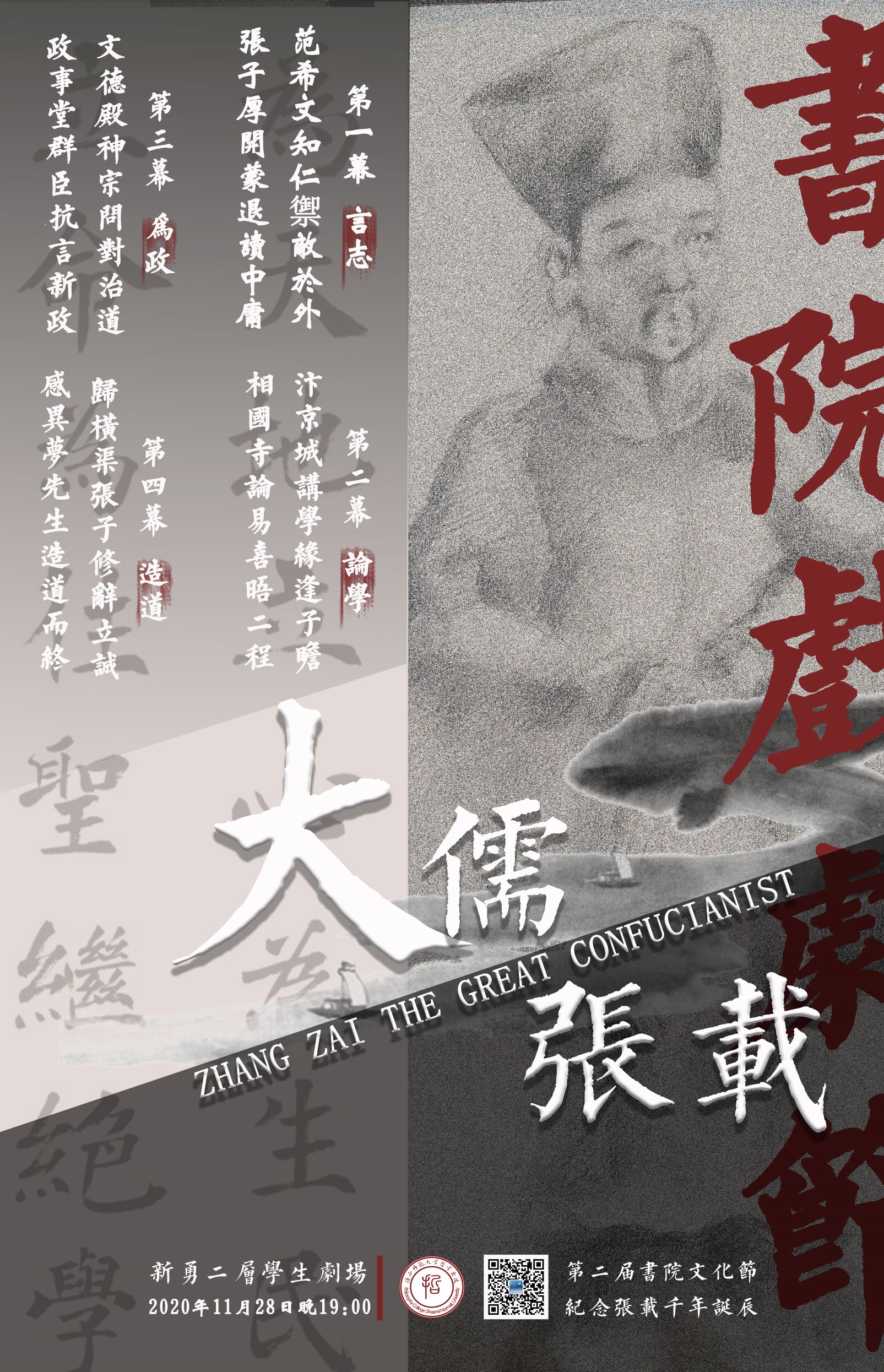 为纪念张载诞辰千年,伟德国际1949始于英国哲学书院自编自导自演的大型原创历史话剧《大儒张载》将于11月28日(本周六)晚19:00在长安校区新勇二层学生剧场正式公演。