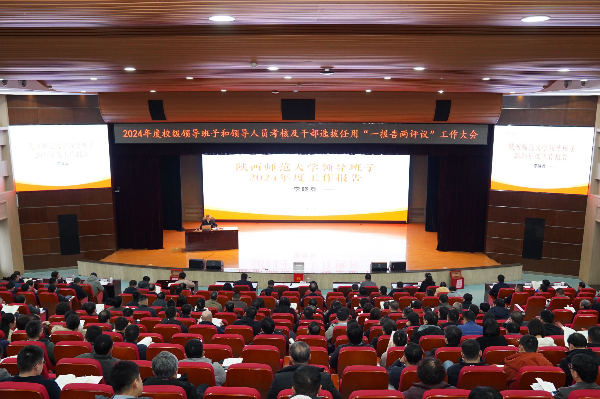 会上,校党委书记李晓兵代表学校领导班子作2024年度工作总结并通报民主生活会情况。他指出,一年来,学校坚持以习近平新时代中国特色社会主义思想为指导,深入学习贯彻落实党的二十大和二十届二中、三中全会精神和全国教育大会精神,锚定教育强国建设战略部署和“中国特色、世界一流师范大学”目标定位,科学统筹事业发展与安全稳定,扎实推进新时代立德树人工程,系统提出“面向世界、胸怀国家、心系人民、扎根西部、服务陕西”的办学理念,“巩固人文社科优势,提振理科,适度发展工科”的学科建设思路,组建地方研究院、与高水平大学A+学科开展战略合作等“借船出海”的发展新路径,坚持和加强党的全面领导,党建质量全面提升,立德树人成效不断提高,教师教育工作格局持续深化,学科建设成效明显,学校事业发展向上向好态势持续巩固、不断拓展。