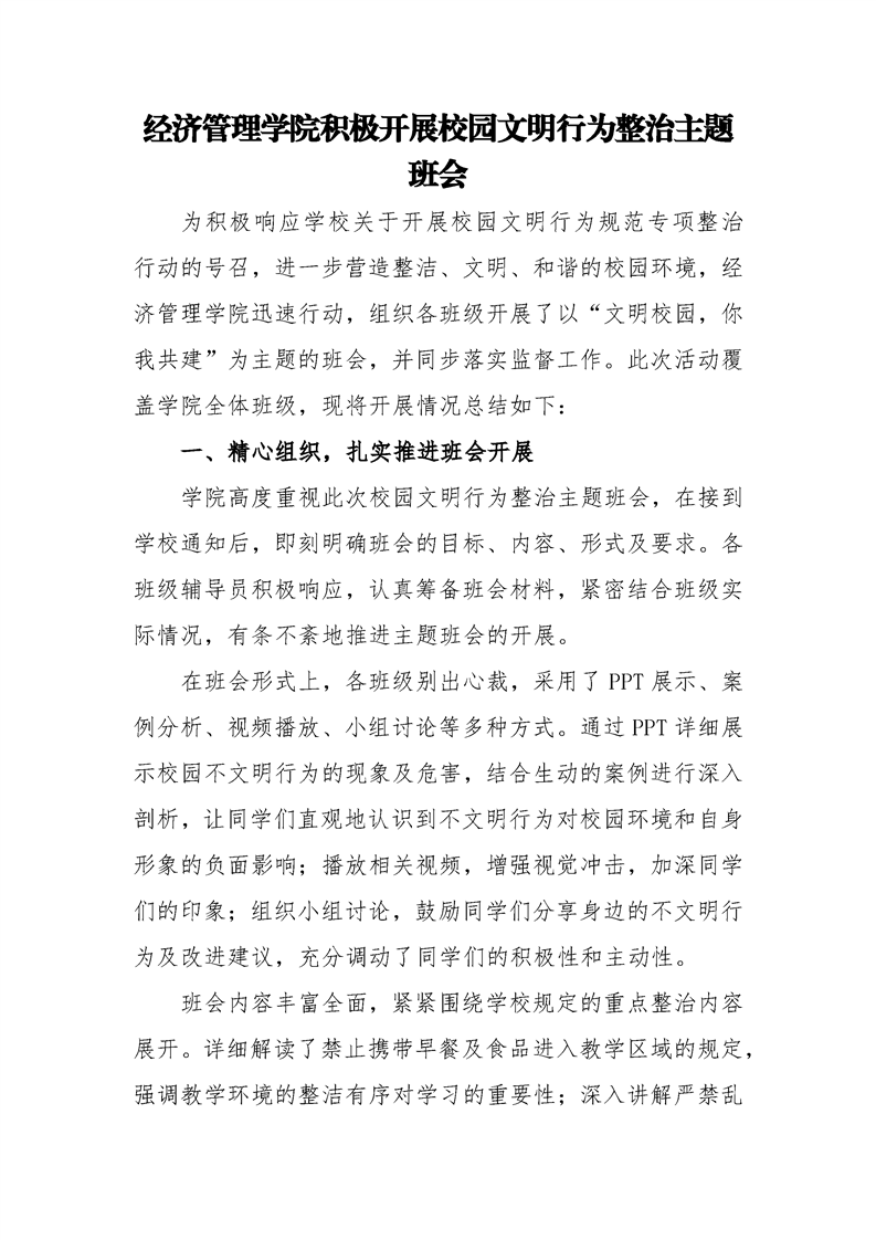 经济管理学院积极开展校园文明行为整治主题班会